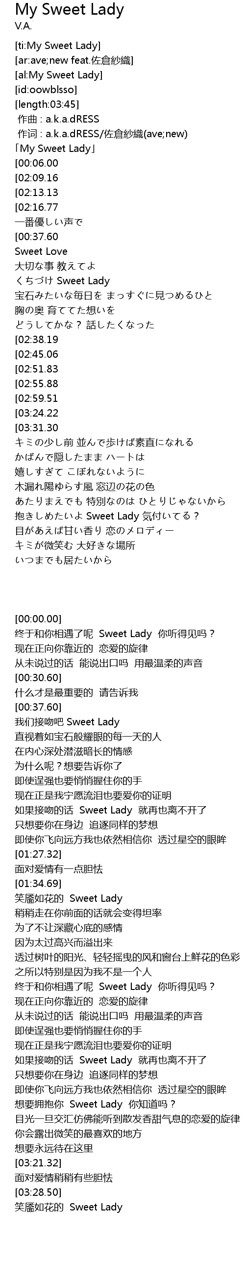 | [01:12.33][02:51.83] | My Sweet Lady li |