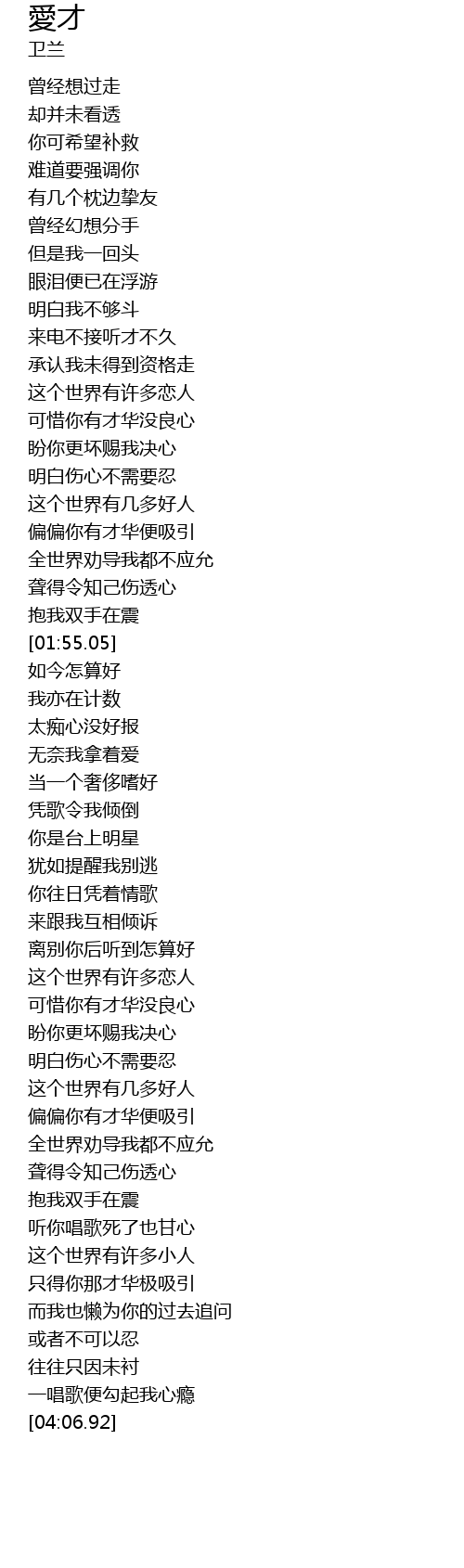 | [01:17.51] | kě xī nǐ yǒu cái huá méi liáng xīn |