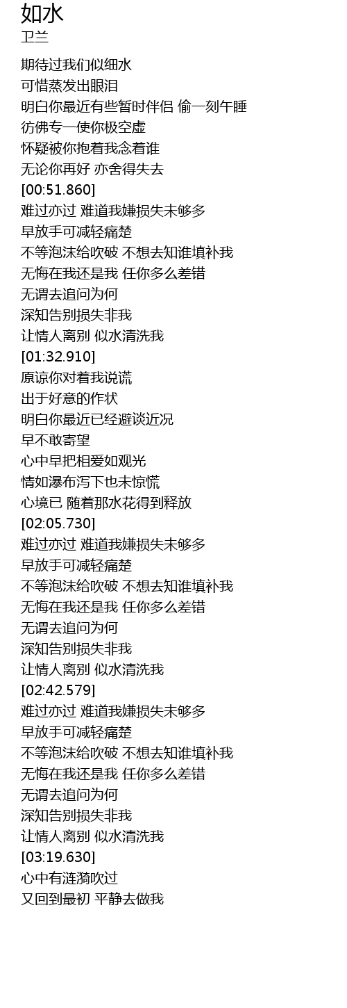 | [03:12.530] | 让情人离别 似水清洗我 |