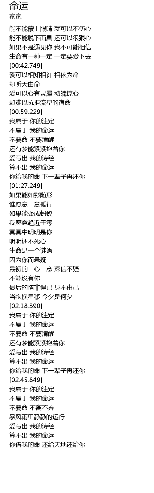 | [02:23.299] | bù shǔ yú wǒ de mìng yùn |
