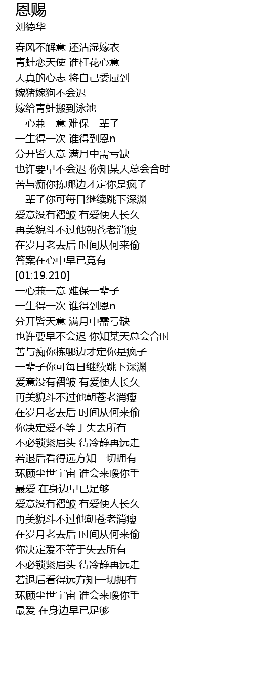 | [00:36.50] | 一生得一次 谁得到恩n |