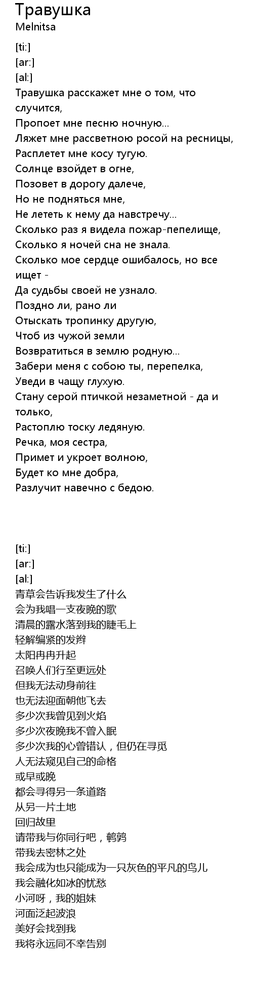 | [00:33.95] | Травушка расскажет мне о том, что случится, |