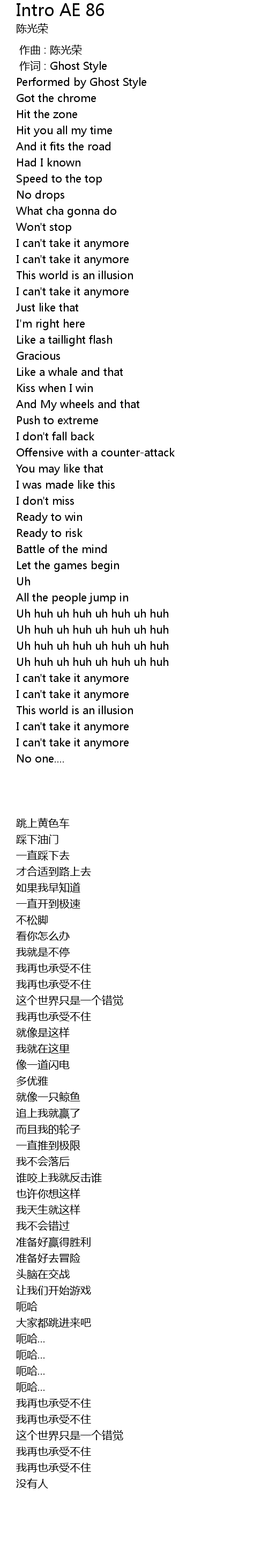 | [00:01.00] | 作词 : Ghost Style |