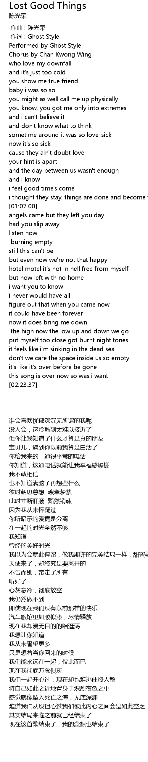| [00:01.00] | 作词 : Ghost Style |
