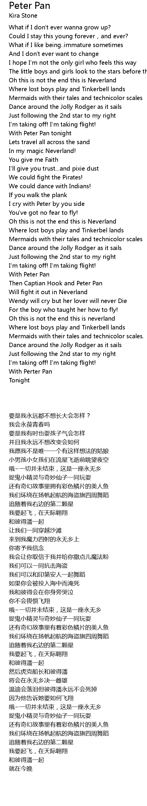 | [02:47.35] | 温迪会落泪但彼得潘永远不会死掉 |