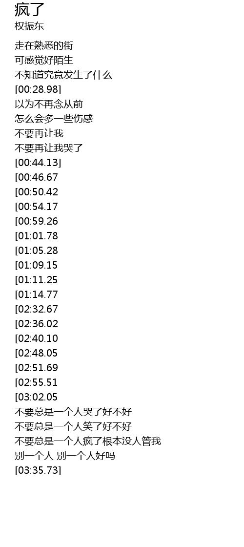| [03:23.21] | 不要总是一个人疯了根本没人管我 |