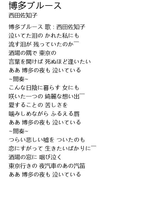 | [00:00.95] | 博多ブルース 歌:西田佐知子 |