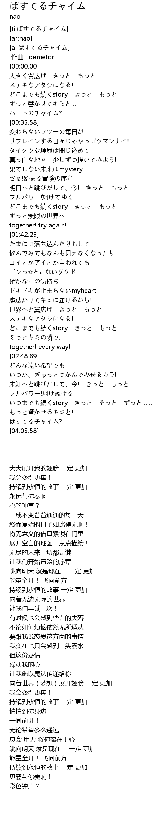 | [02:12.98] | ドキドキが止まらないmyheart |