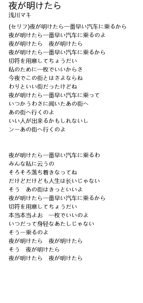 | 夜が明けたら一番早い汽车に乘るわ | |