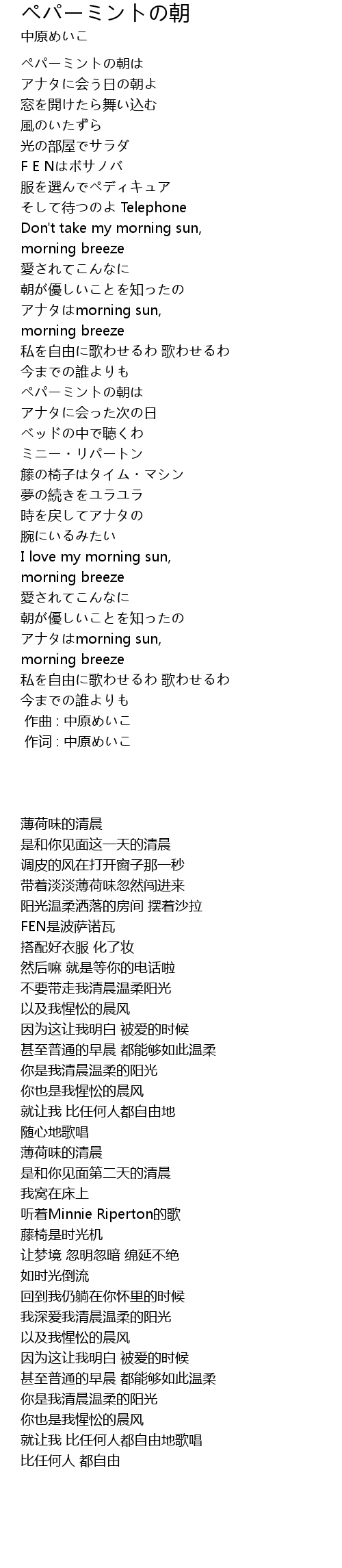 | [00:00.00] | 作曲 : 中原めいこ |