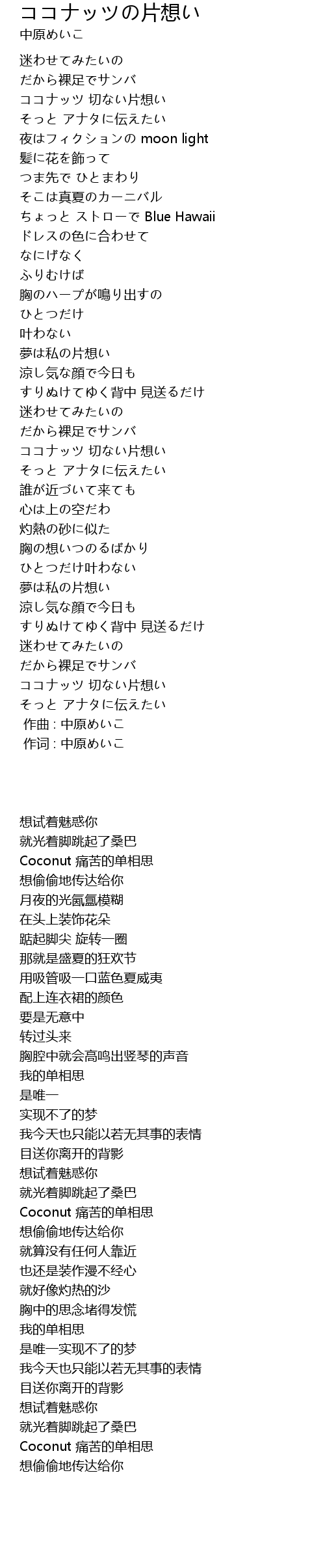 作词 : 中原めいこ |