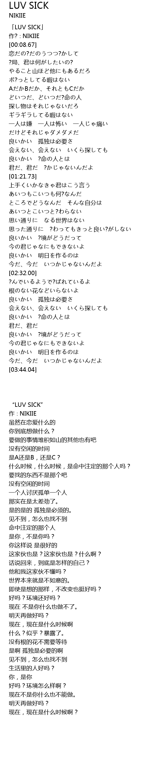 | [00:00.00] | “LUV SICK” |