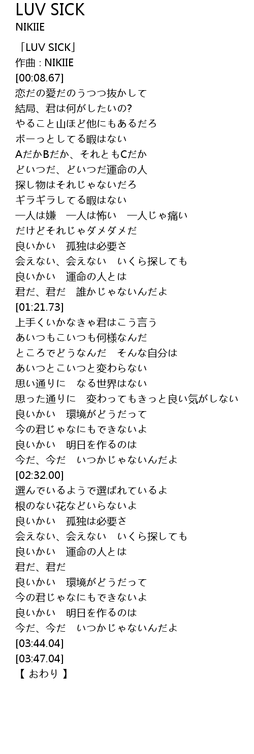 | [00:00.00] | 「LUV SICK」 |