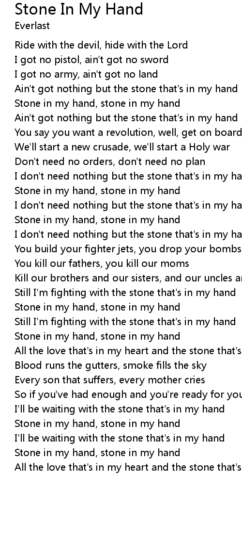 Ain't got nothing but the stone that's in my hand |