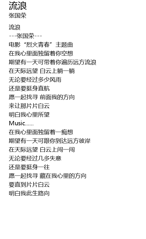 | 歌曲 | 流浪 |