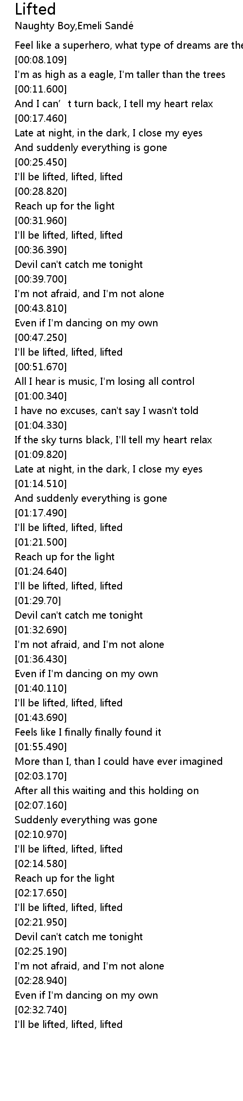 | [02:18.320] | I'll be lifted, lifted, lifted |