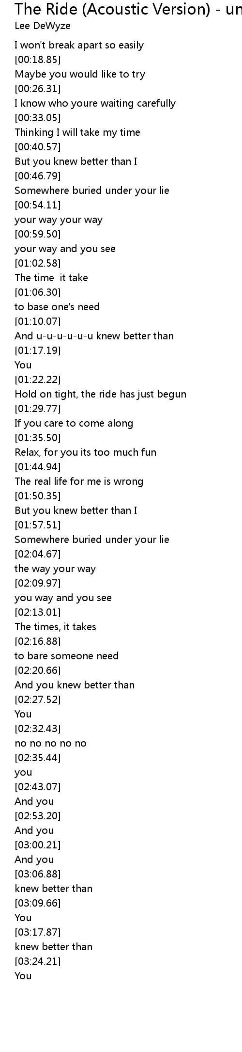 The Ride (Acoustic Version) - unplug 歌词