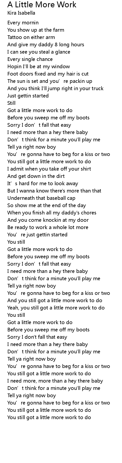 | 歌曲 | A Little More Work |