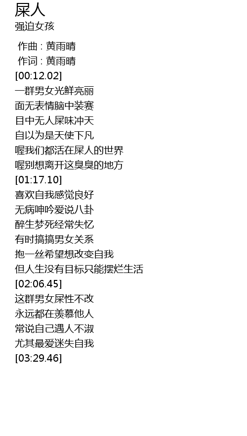 | [00:59.27] | 喔我们都活在屎人的世界 |
