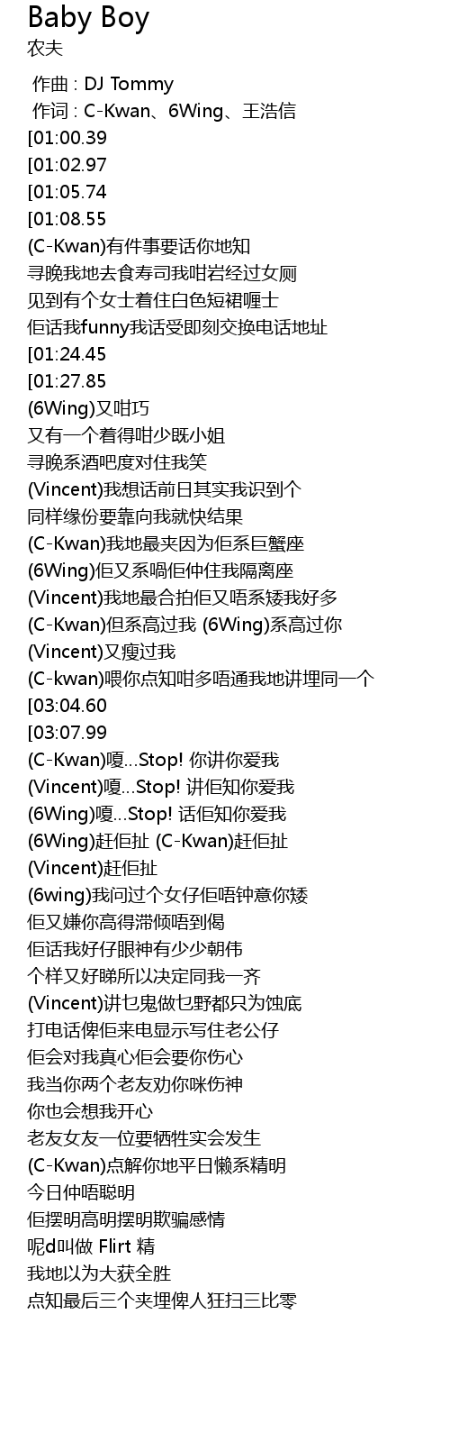 | [00:01.00] | 作词 : C-Kwan、6Wing、王浩信 |