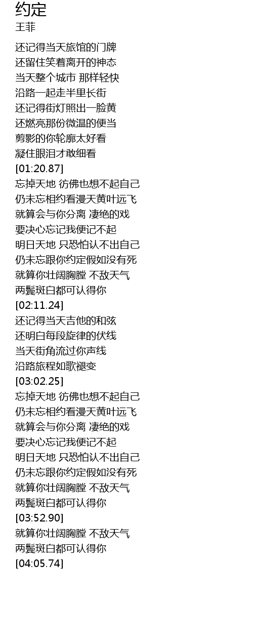 | [01:53.65] | réng wèi wàng gēn nǐ yuē dìng jiǎ rú méi yǒu sǐ |