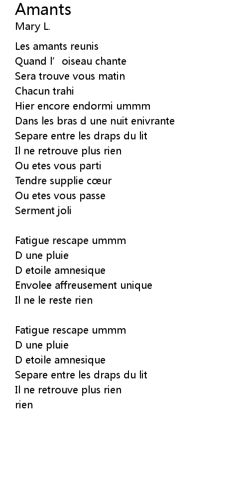 | 歌曲 | Amants |