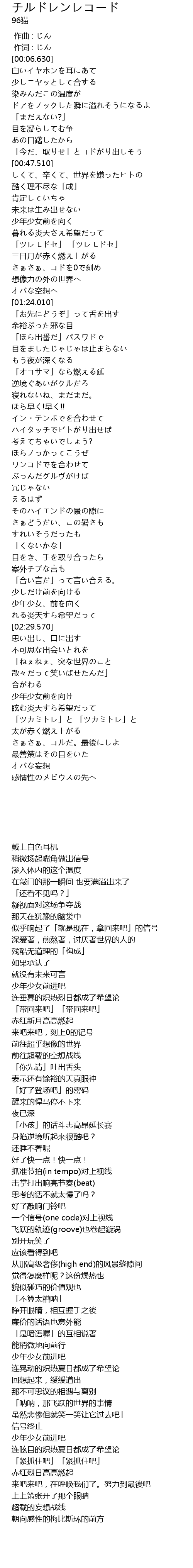 | [00:01.00] | 作词 : じん |