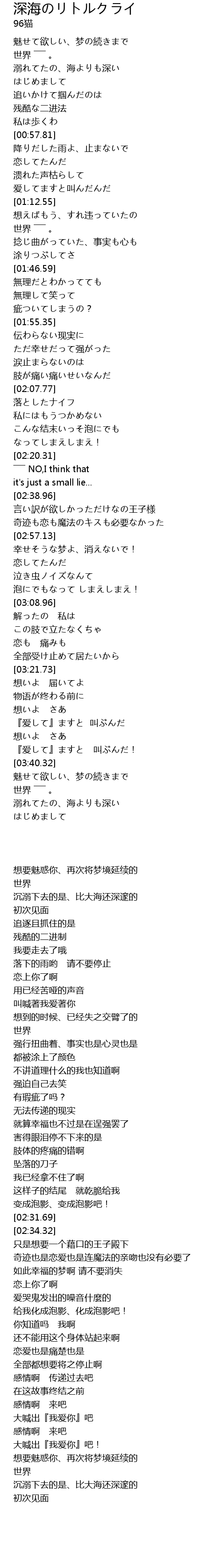 | [00:38.67] | 溺れてたの、海よりも深い |