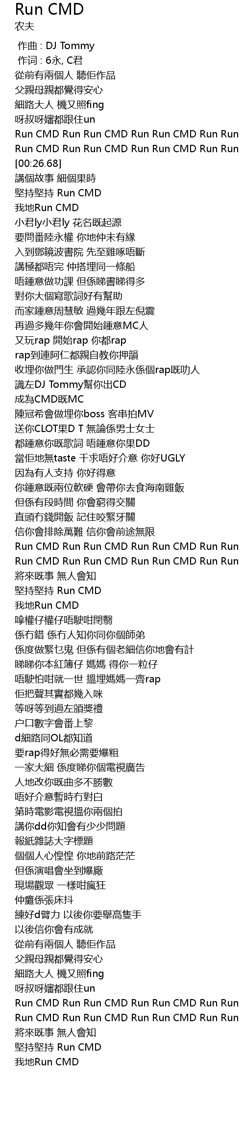 | [00:22.83] | Run CMD Run Run CMD Run Run CMD Run Run |