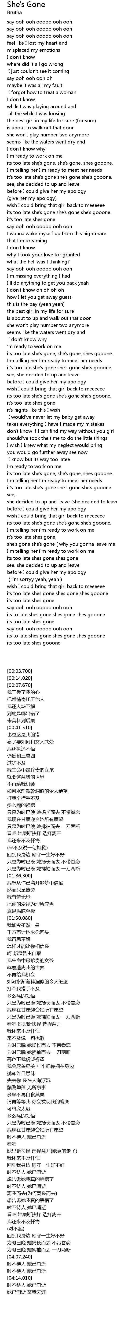 its to late shes gone shes gone shes gooone |