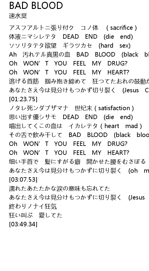 | [02:22.46] | その舌で飲み干して BAD BLOOD (black blood) |