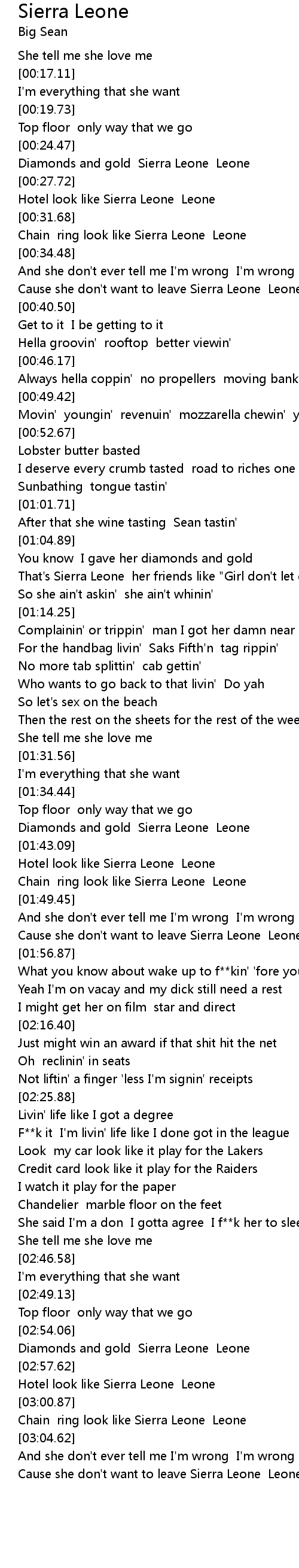 She said I'm a don I gotta agree I f**k her to sleep |