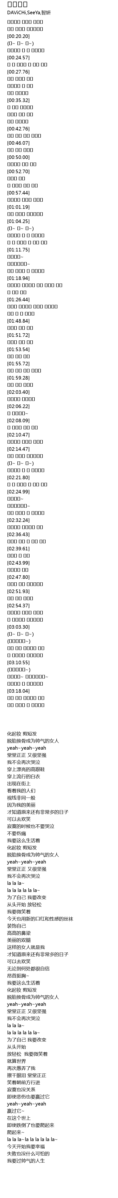 | [00:17.70] | 脱胎换骨成为帅气的女人 |