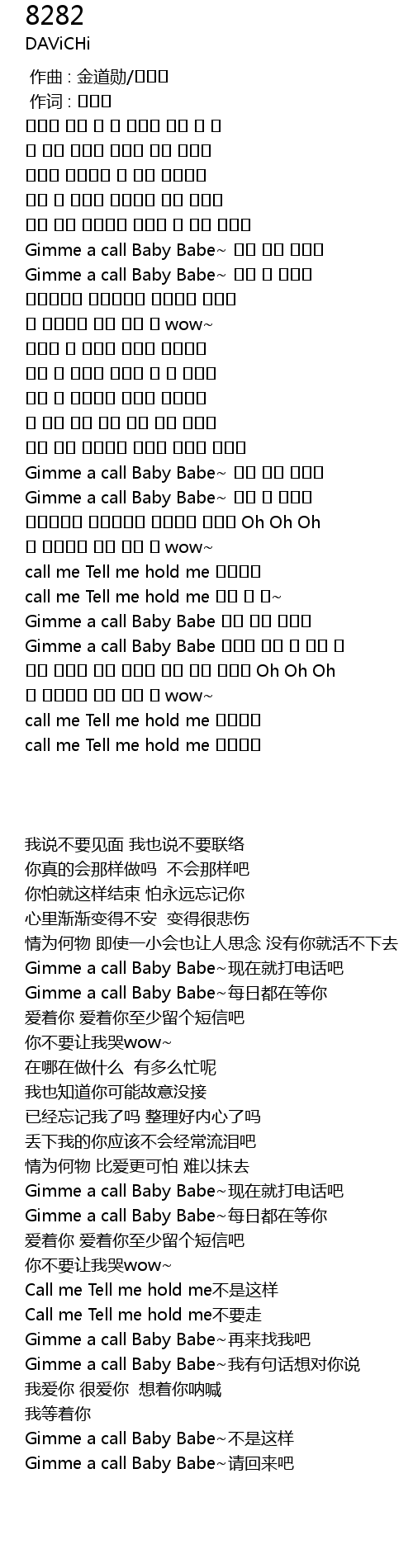 | [02:16.06] | Gimme a call Baby Babe~每日都在等你 |