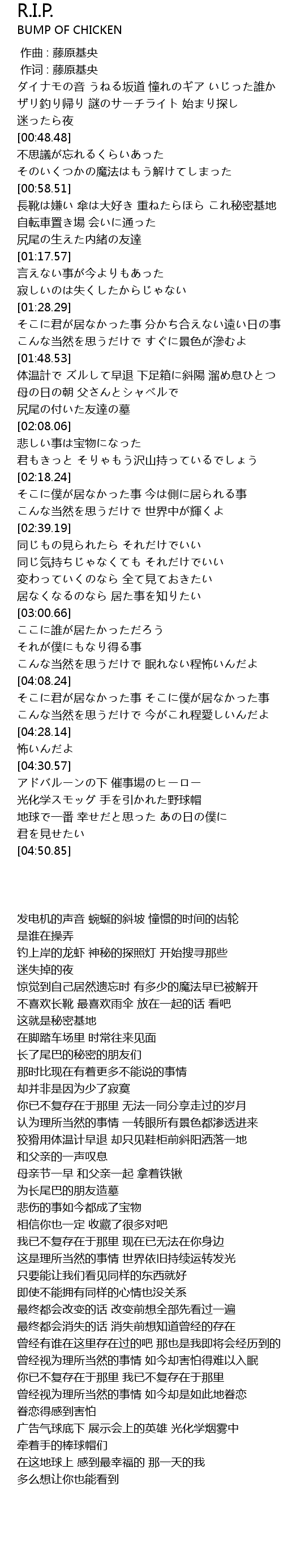 | [00:00.00] | 作曲 : 藤原基央 |