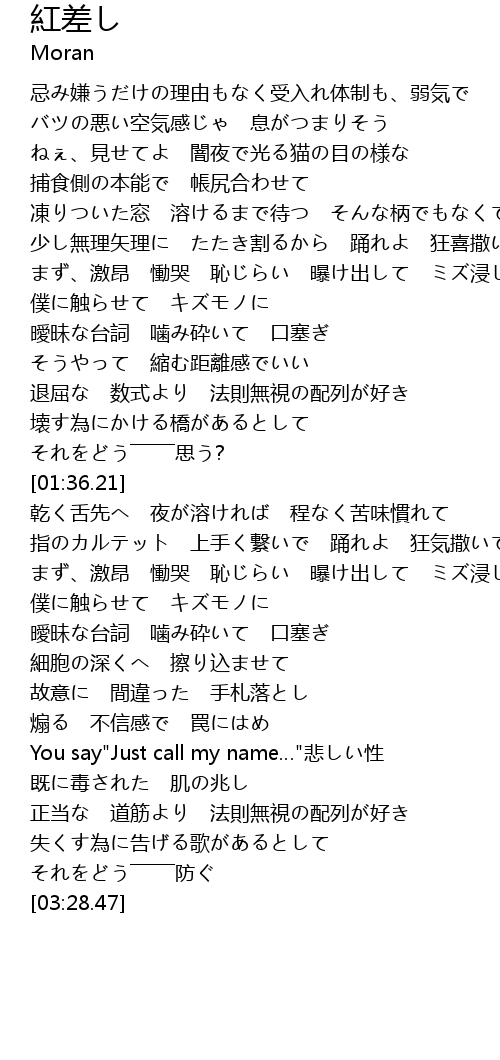 | [01:02.51] | まず、激昂 慟哭 恥じらい 曝け出して ミズ浸し |