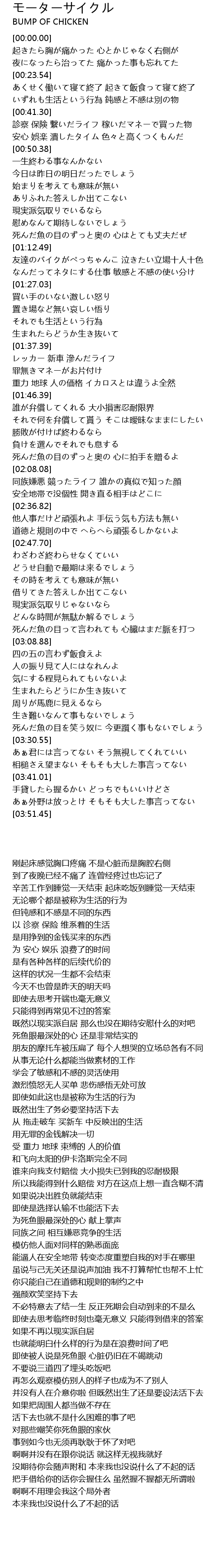 | [01:16.62] | 友達のバイクがぺっちゃんこ 泣きたい立場十人十色 |