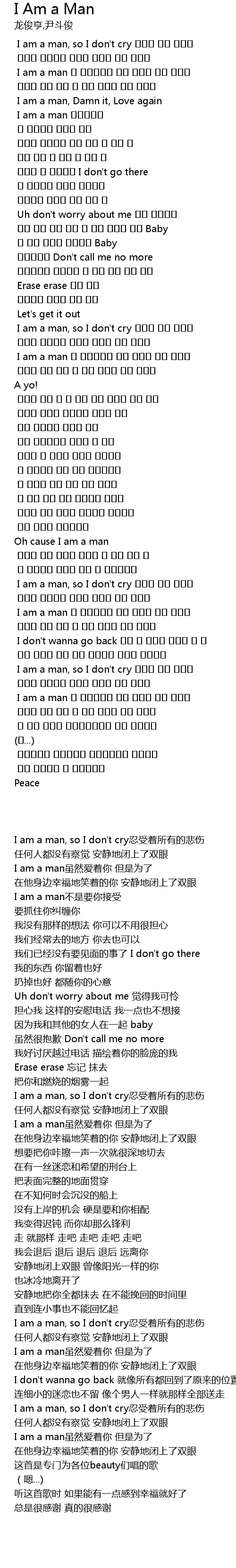 | [00:13.389] | I am a man, so I don' t cry |