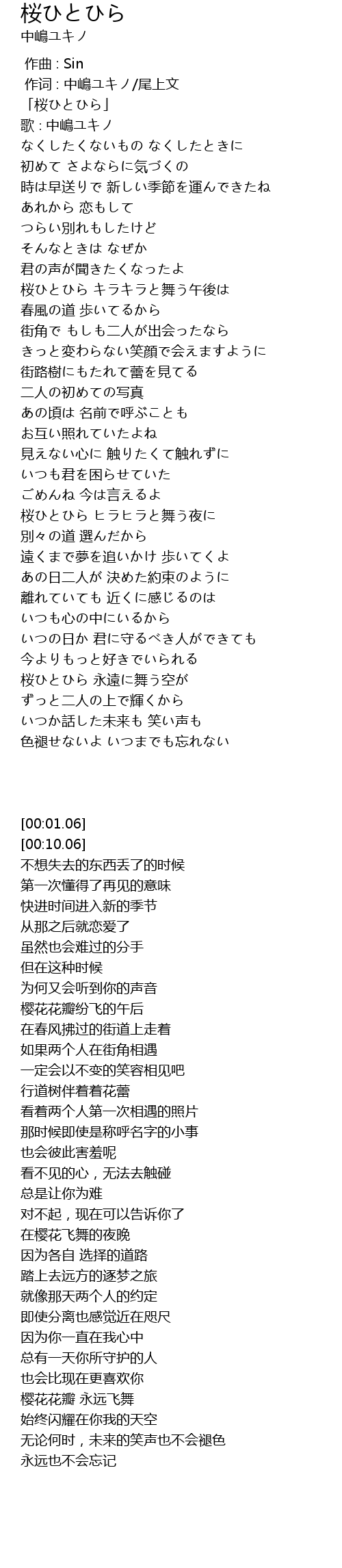 | [00:01.06] | 「桜ひとひら」 |