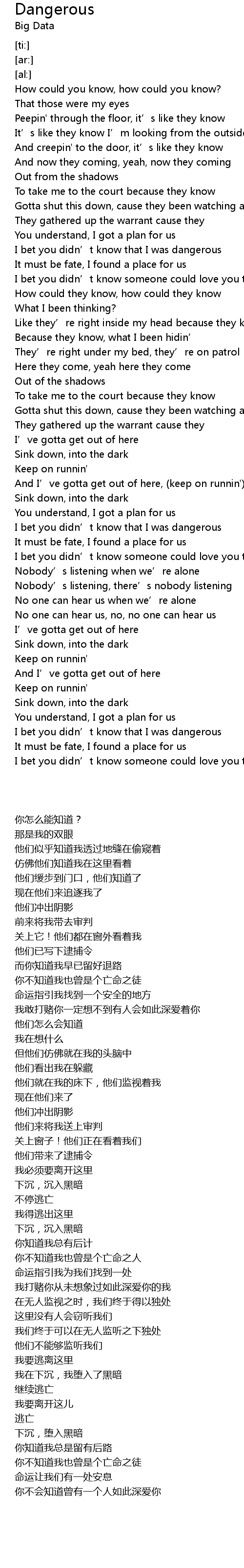 | [01:01.60] | I bet you didn' t know that I was dangerous |