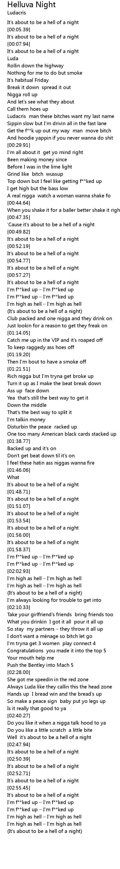 | [02:50.95] | It' s about to be a hell of a night |
