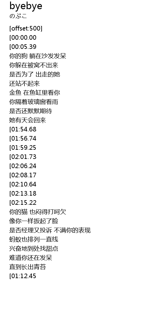 | [02:28.73][01:54.68][00:45.70] | Come on say Bye Bye Bye |