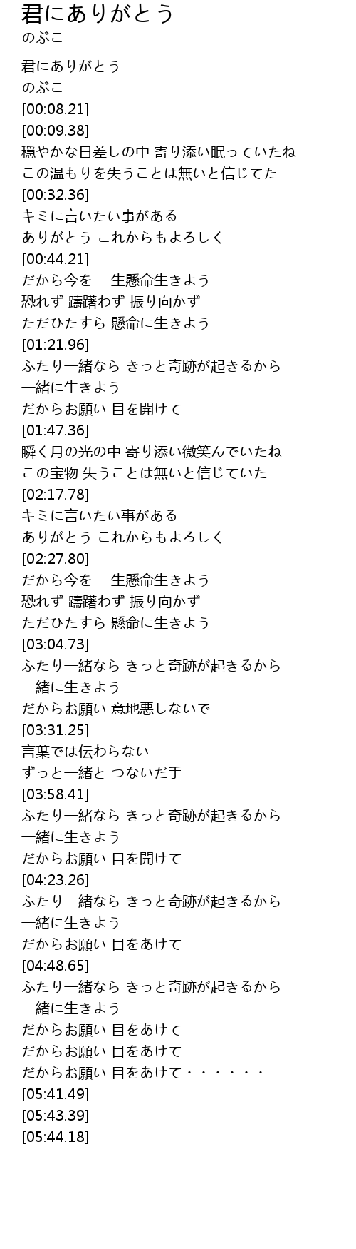 | [00:39.75] | ありがとう これからもよろしく |