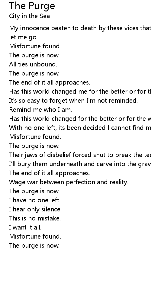 The purge is now. |