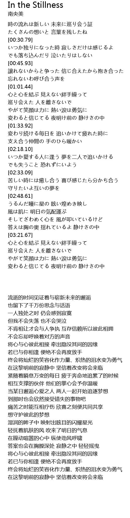 | [03:45.34] | 在这黎明前的寂静中 坚信着改变将会来临 |