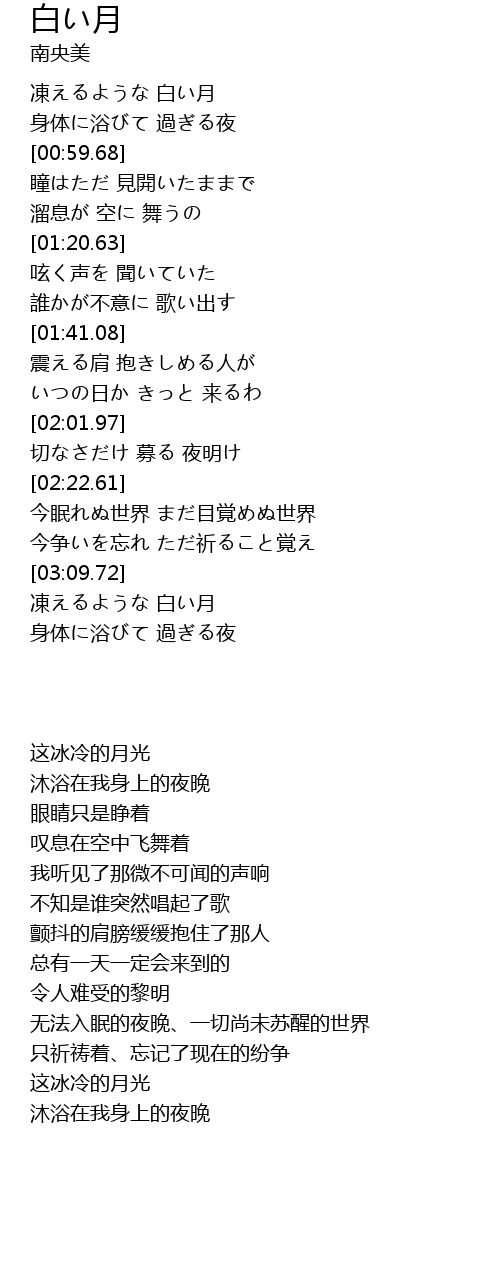 | [00:43.50] | 凍えるような 白い月 |