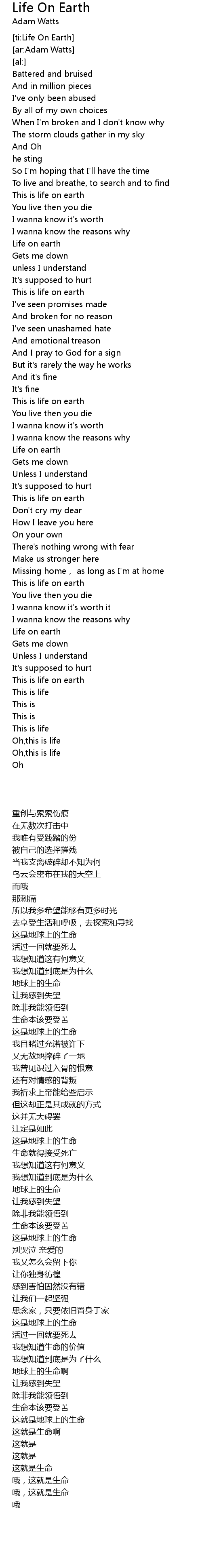 | [03:47.34] | This is life on earth |