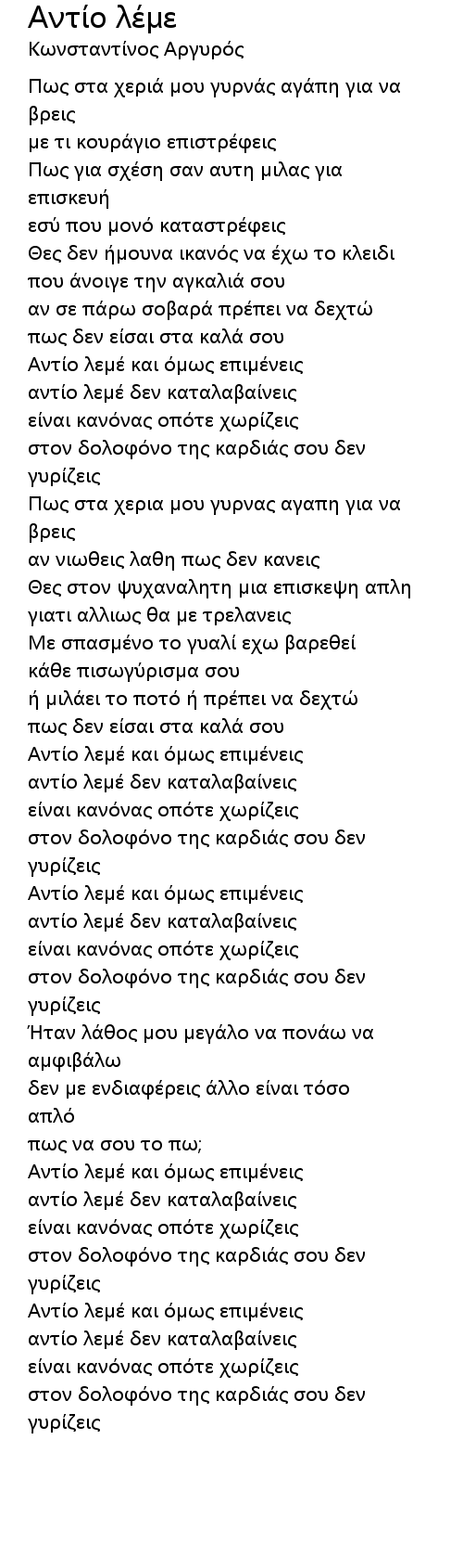 Αντίο λέμε 歌词