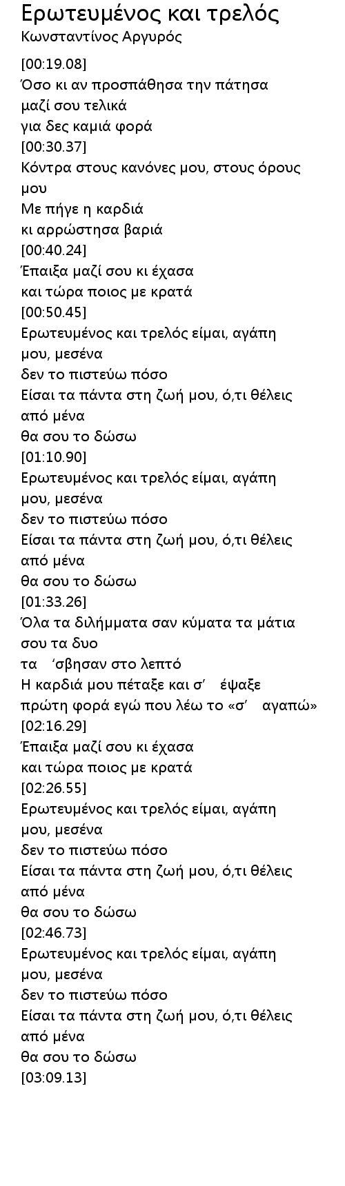 Ερωτευμένος και τρελός είμαι, αγάπη μου, μεσένα |
