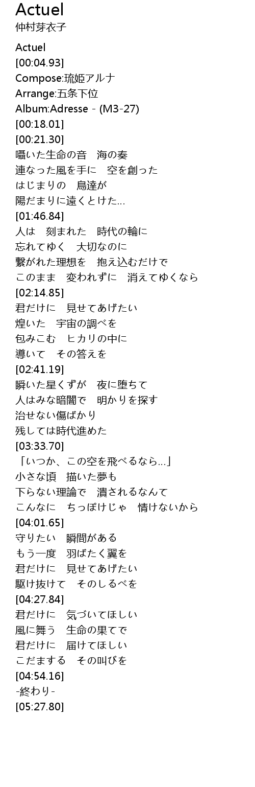 | [05:22.76] | -終わり- |